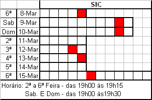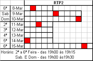 dos tempos de antena televisivos. Os quadrados vermelhos correspondem