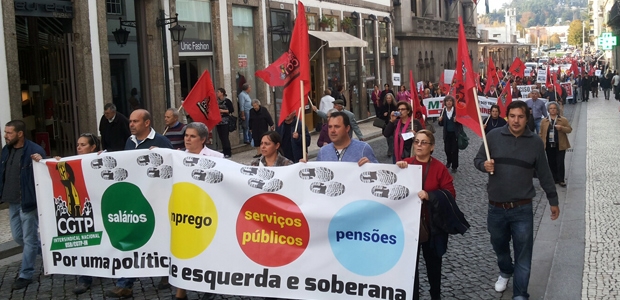 Uma delegação do PCP em que participaram João Frazão, da Comissão Política do Comité Central, e Carlos Almeida e Sílvio Sousa do Secretariado da DORB, integraram hoje a Marcha promovida pela CGTP-IN, que teve início em Guimarães, com três desfiles, dos sectores publíco e privado e dos moradores dos Bairros Sociais, que culminaram numa concentração no Largo do Toural.